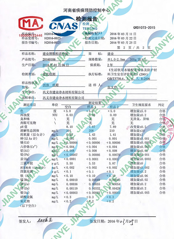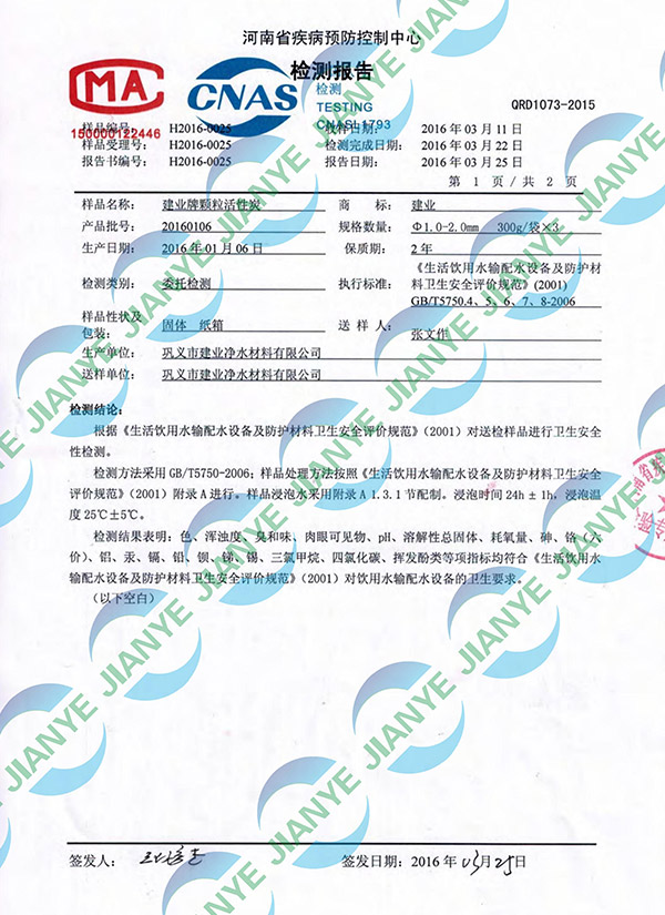 活性炭河南省防疫站檢測報告
