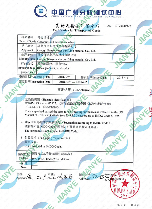 椰殼活性炭廣東分析檢測(cè)【建業(yè)凈水】